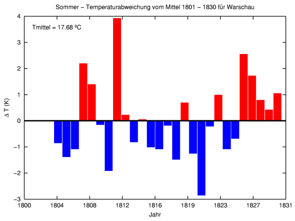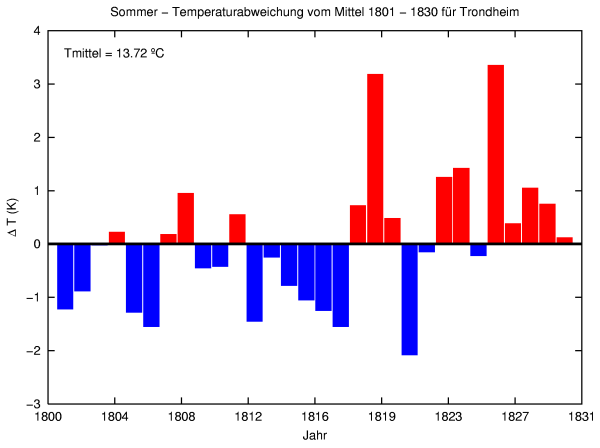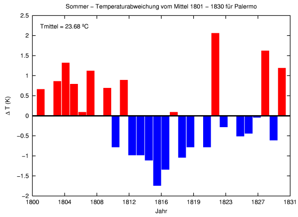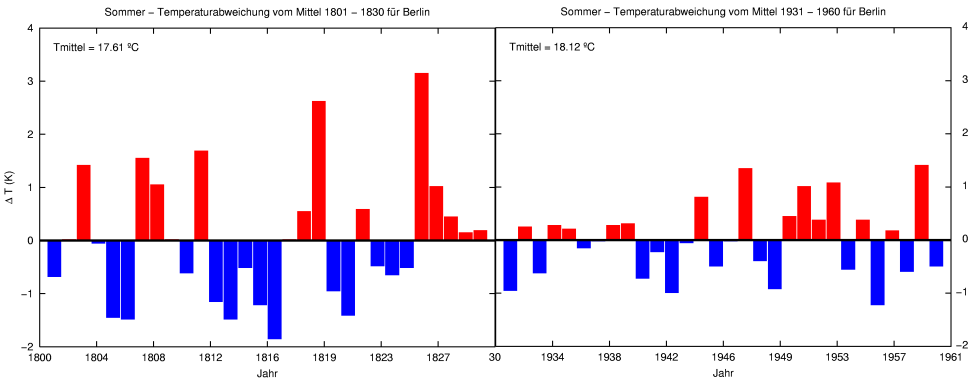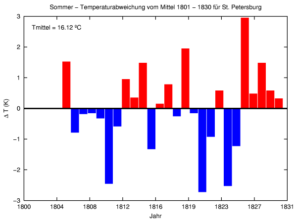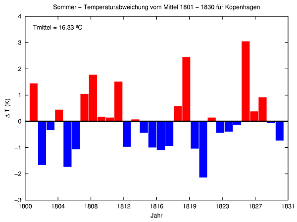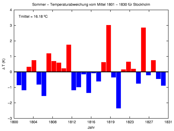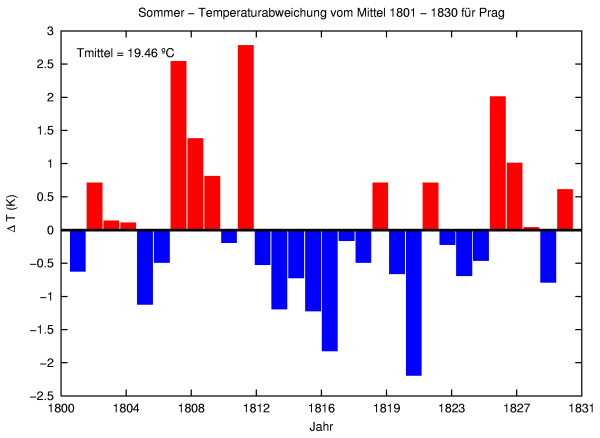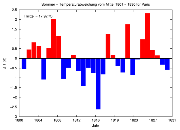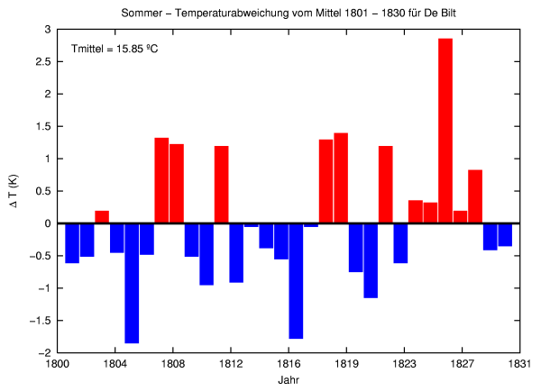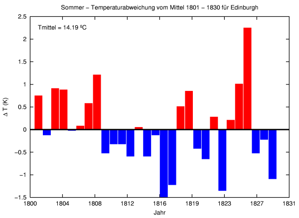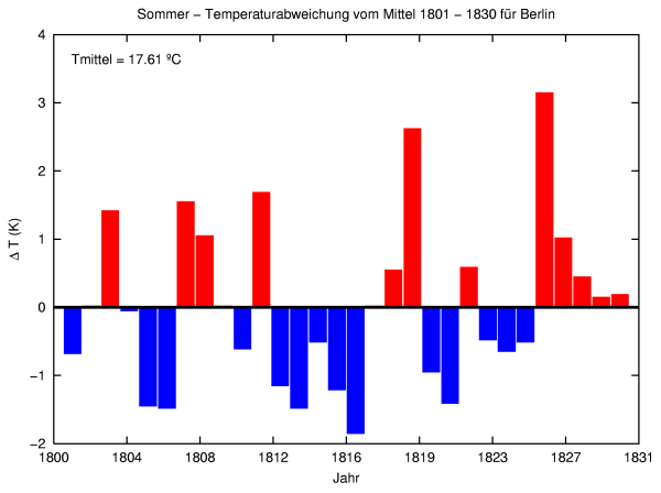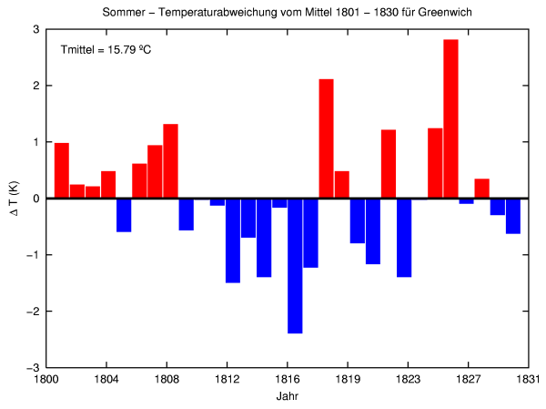 Abweichungen von 1801 - 1830 vom Sommermittel dieses Zeitraums. Und