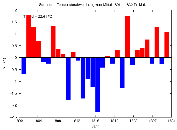 Die GHCN-Daten [10] für Mailand haben ausgerechnet für den August 1816 eine Lücke, diese konnte aber durch Auswertung der Tagesdaten für Mailand aus [12] geschlossen werden