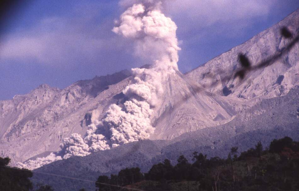 die Explosion eines Vulkans entsteht, siehe Bild links).